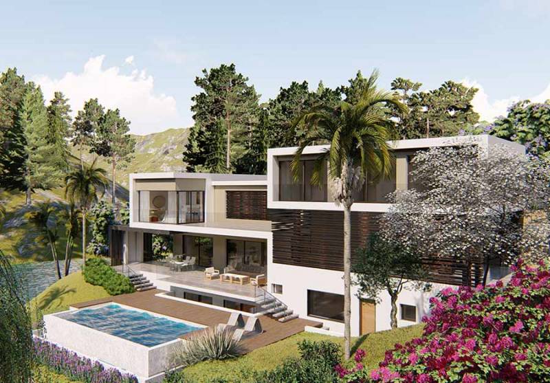 En este proyecto de arquitectura el juego volumétrico se incorpora al terreno combinando la opacidad y la transparencia. Predominan formas simples de líneas rectas y materiales nobles como la piedra, el hormigón y el metal.